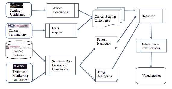會議主講人Deborah L.Mcguinness,算是Ontology領域的開啟者,目前是Tetherless World Constellation的科學家,這次他分享的題目是Semantic Data Resources Enabling Science: Building, Using, and Maintaining Ontology-Enables Biology Data Resources,簡報裡的架構感覺慢慢他的研究框架,東西蠻多的,目前他主要在做CHEAR 項目,慢慢講其延伸到臨床指引的應用,其中蠻酷的是提到他們如何設計整個框架,把如糖尿病指引,差解成semantic usage的架構。
