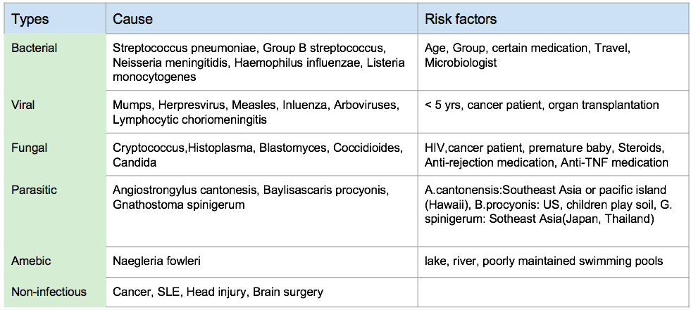 - 另外,像是腦脊隨液中的格蘭氏染色等等,但假如在腦脊髓液中的箘量不多時,這類方法就不容易驗出來