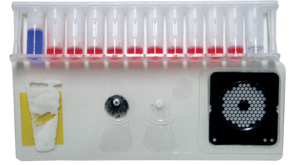 簡單來說,BioFire FilmArray是一個整合性的病原菌檢測套組,裡頭可以將檢體進行PCR、並且同時做多種病原菌的DNA/RNA的檢測,看是否特定病原箘的遺傳物質出現在檢體中。整組看起來像下面這樣: