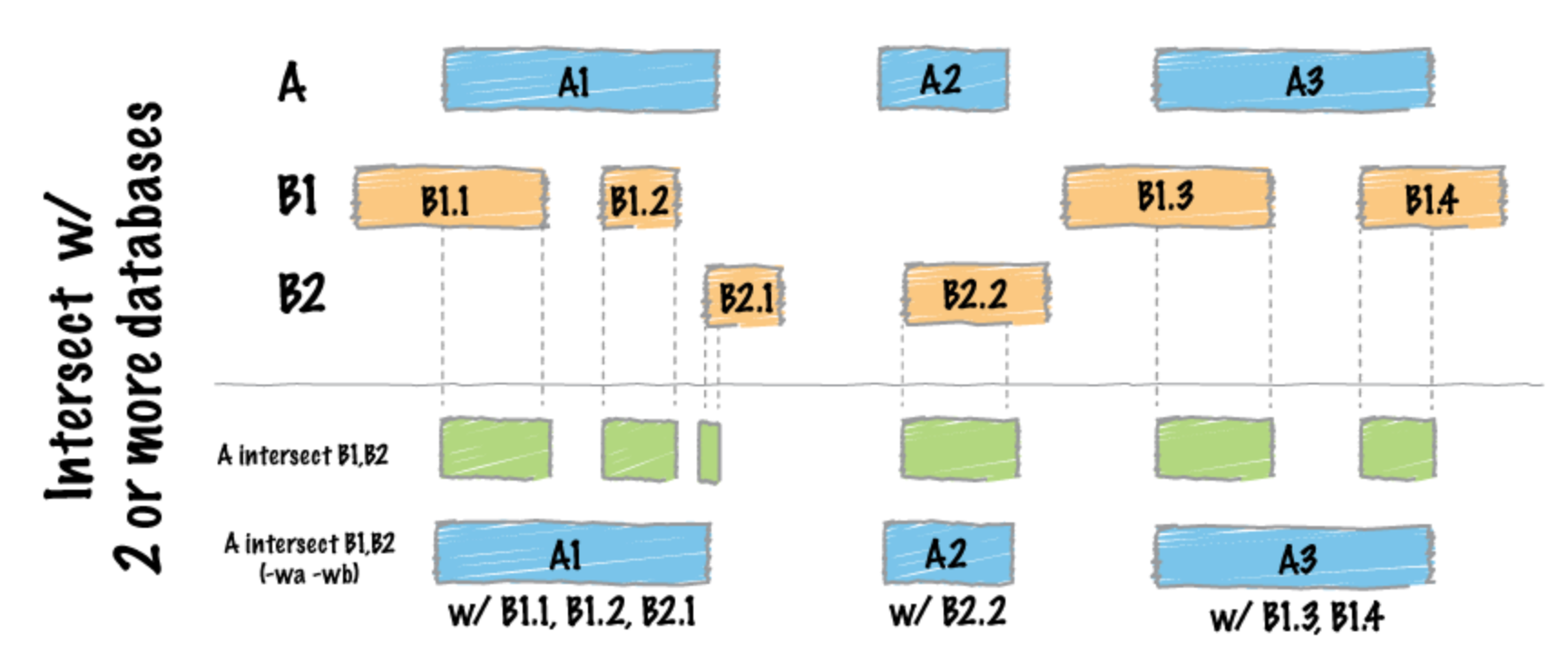 這邊代碼的意思是去看每一個-a後面的檔案其在-b後面的amplicon範圍,並且將兩個資料合再一起,並且最後使用bash的指定cut,只留下特定想要的欄位供後續的使用。像是下方的示意圖: