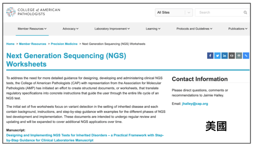 目前在臨床實驗室認證台灣非常重視的CAP(College of Amierical Pathologist)的規範,其近期也有一系列文章和網站資源在提供次世代定序的實驗室規範,蠻值得一看的。