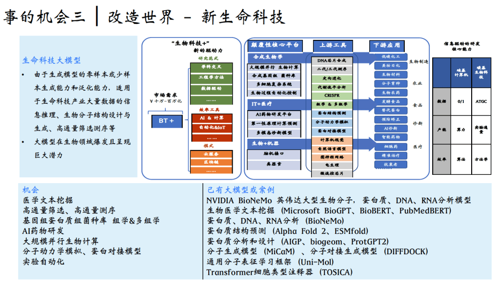我們為大家提供了一個系統性的框架,這個框架包含三個機會板塊,我們用這個框架來指導所有的投資和與創業公司或創業者的互動。 第一,人類的本質是認識世界並改造世界,人類是一個減熵的物種; 第二,我們通過數位化來擴展自身,因此數位化是一大機會,它驅動著整個人類的進步,包括基礎設施平臺和數位化應用兩個子板塊; 第三,改變世界的力量來自能源、生命科學、材料科學和空間科學。